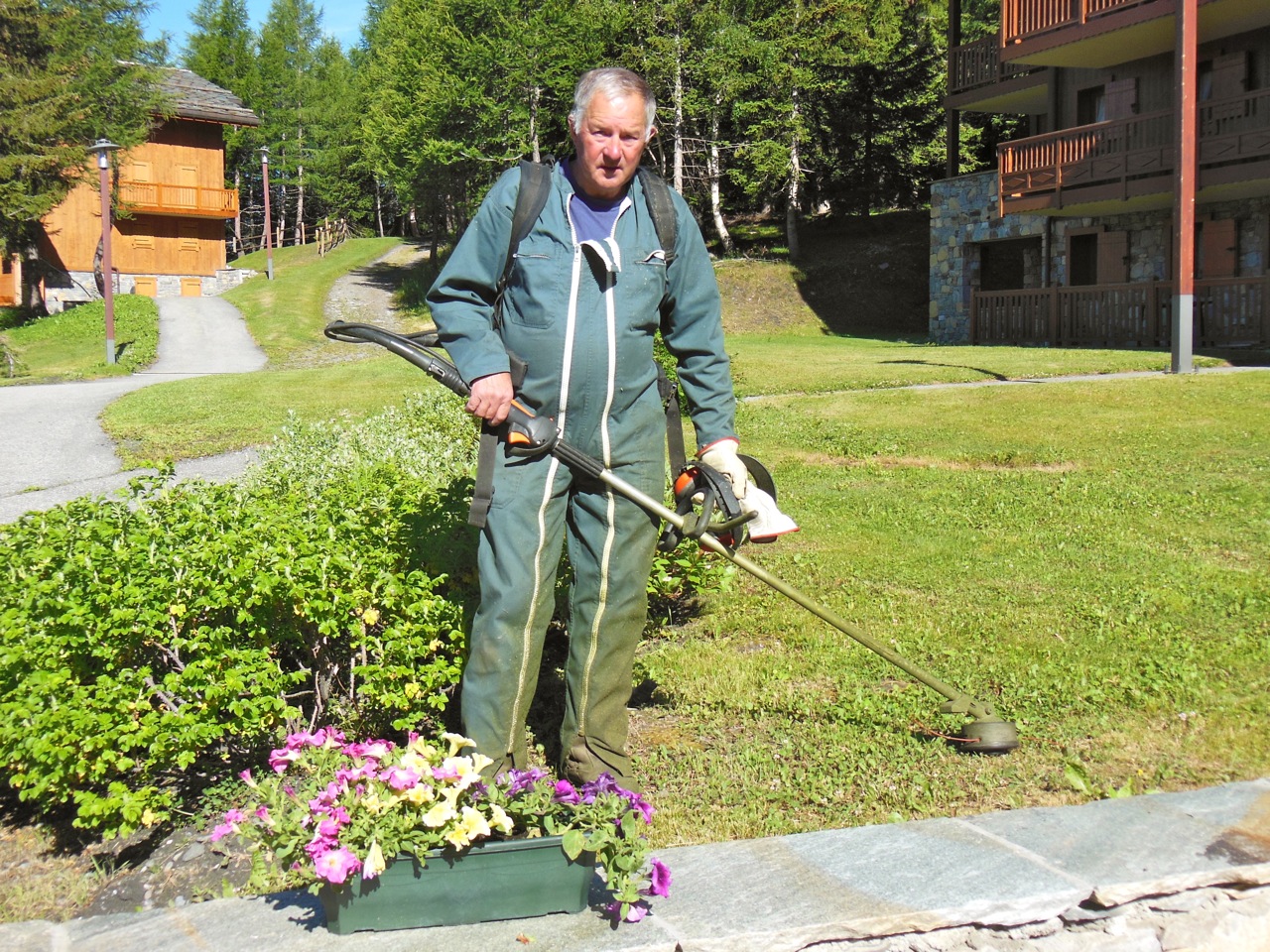 Chaque matin notre jardinier est présent dans les espaces verts des Cimes Blanches. Vous le rencontrerez certainement cet été, poussant sa tondeuse ou maniant avec habilité sa débroussailleuse (notre photo). Ajoutez à cela les jardinières mises en place par CGH et vous comprendrez pourquoi les Cimes Blanches seront, cette année encore, candidates à un prix dans le concours de fleurissement de La Rosière.