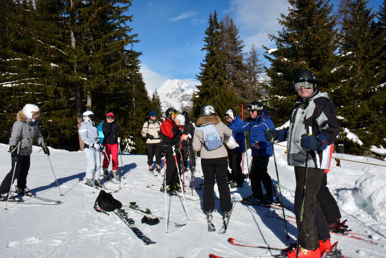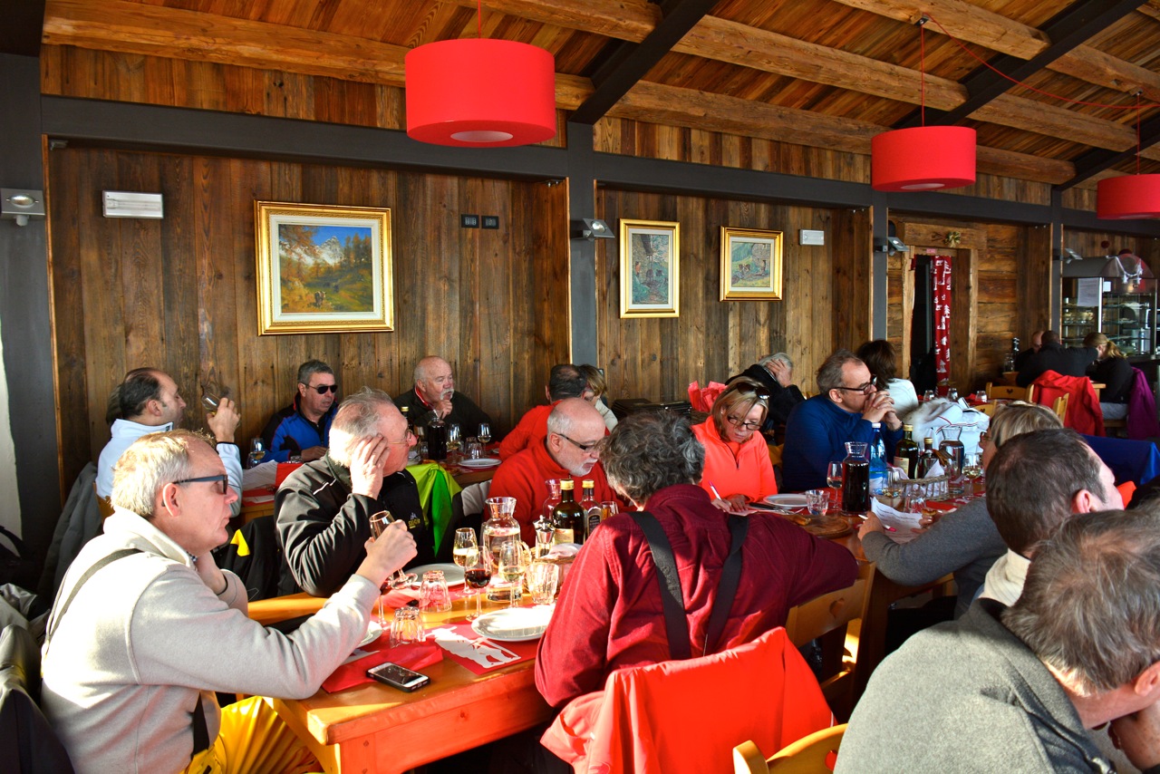 Une excellente idée ce report car c’est un soleil radieux qui nous attendait le mercredi matin alors que les 35 concurrents buvaient le café chaud et dégustaient les pains au chocolat offerts au Kitsbühel par Mathias Bochet et Philippe Duranton. Seul un gros coup de vent dans le col du Petit Saint-Bernard vint quelque peu modifier notre parcours mais très vite, au pied du glacier du Ruitor, dans cette forêt magique descendant vers La Thuile, tous les participants retrouvèrent leur quiétude. Et après avoir repris des forces à la Maison Carrel, il était temps de repartir vers la France où, sur l’ancien altiport, Simon et Thibault nous attendaient pour ce vertigineux test de vitesse qui en fit « flipper » plus d’un ou d’une.