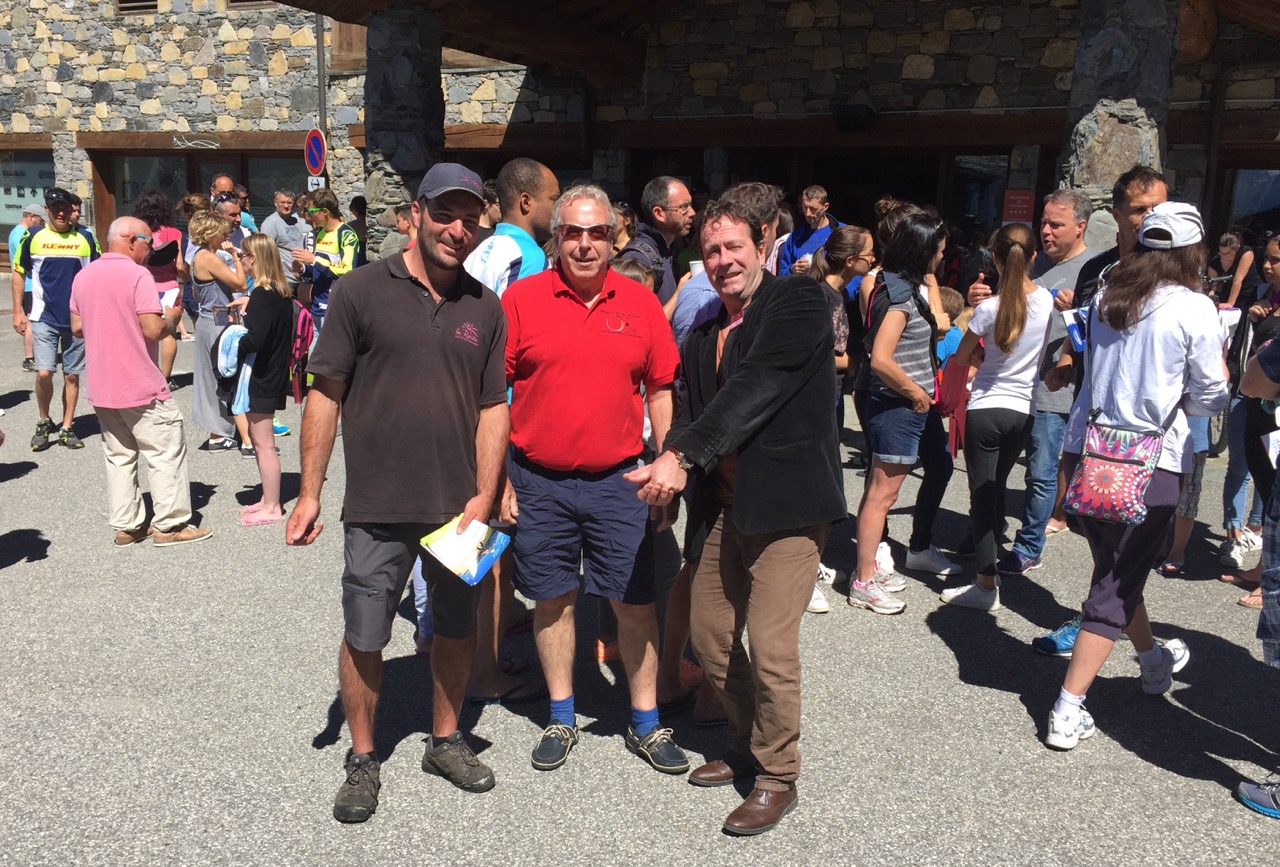 Le 16 juillet dernier, lors du pot d’accueil dominical, Patrice Hurlin, nouveau directeur de CGH La Rosière, en compagnie de Jean-Claude Virfeu, président de l’ACCB La Rosière et de Sébastien, responsable du Golf de La Rosière. Une arrivée perturbée par un congé de maladie programmé jusqu’au 21 août.