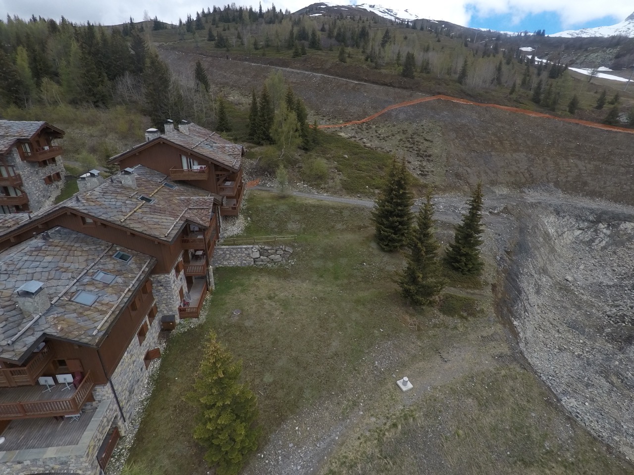 Le groupe Thirode a débuté les travaux de l’Hôtel Averne implanté à l’est des Cimes Blanches, entre notre résidence et le télésiège des Eucherts. Le terrassement est monstrueux. 45 000 m3 de terre ont été brassés. Sur les photos ci-dessus, on voit que le chemin reliant les Cimes Blanches à la piste de ski a disparu mais il sera rétabli cet hiver, lorsque les fondations de l’immeuble seront terminées.