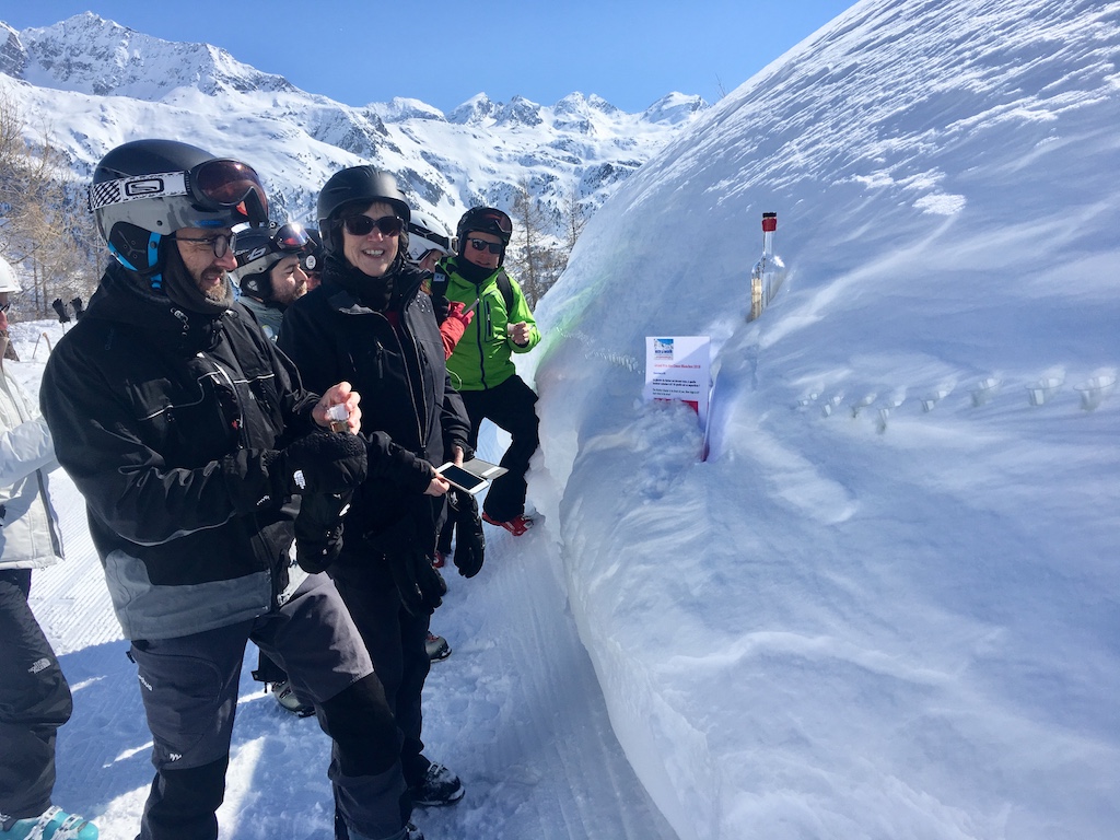 Après avoir goûté l’excellente neige des pistes du Col du Petit Saint-Bernard, il était temps de filer vers la Fourclaz puis de remonter au sommet du domaine italien avant de basculer sur la magnifique piste serpentant au pied du glacier du Ruitor. Un arrêt ravitaillement bien mérité et nous reprenions les skis, direction La Thuile et le Coppapan où l’équipe de Giorgio Fausti, Viorella et Gianni nous attendait pour un repas bien mérité.