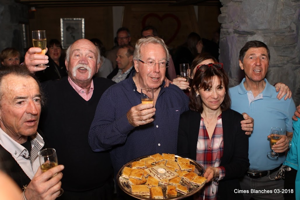 Après de nouveaux chants de la Voix des Alpages , place à la dégustation des huitres de Plougrescant cultivées par William Alguacil, de rillettes du Mans, jambon de Savoie, le tout arrosé d’un excellent Champigny du Clos Maurice et d’un merveilleux Jongieux Jacquère. Mais ce n’était pas tout. Lors de cette soirée, l’ACCB La Rosière qui rassemble aujourd’hui plus de 140 propriétaires des Cimes Blanches fêtait ses dix ans d’existence. Cela méritait bien un gâteau d’anniversaire et quelques bulles !