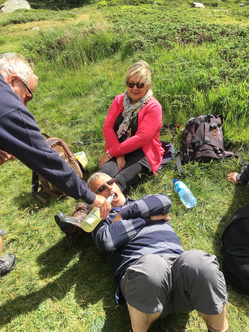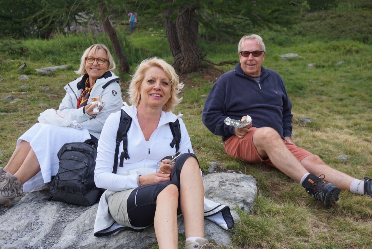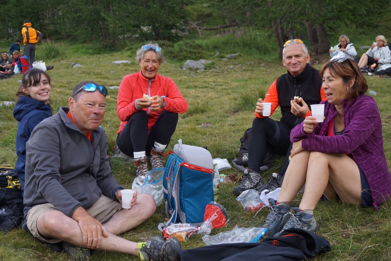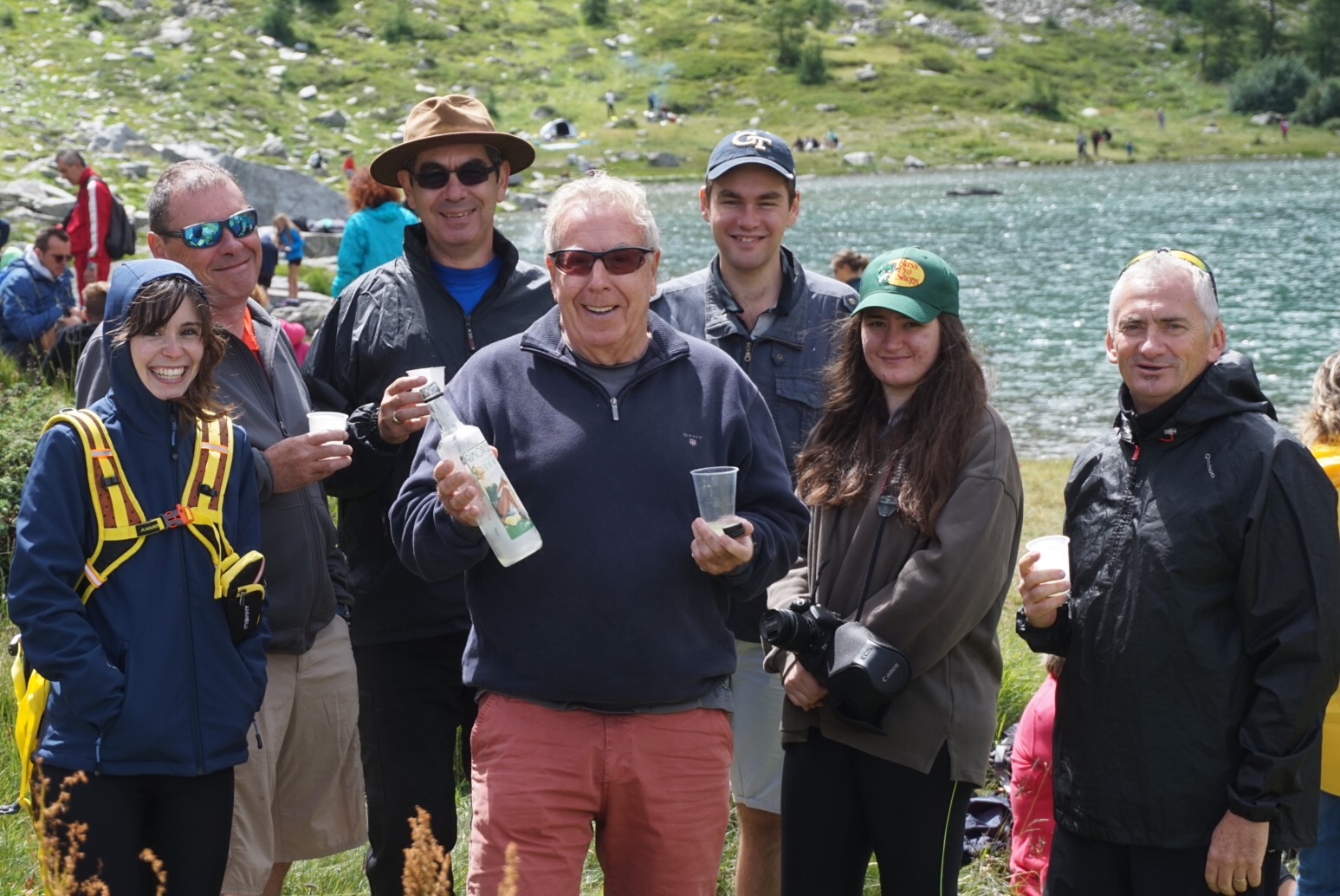 Les plus courageux s’attaquèrent au Col de la Croix avant de rejoindre les rives du Lac d’Arpy. Les autres rallièrent directement le sublime plan d’eau italien. Et tous se retrouvèrent pour un pic nique bien sympathique au bord de l’eau où quelques bonnes bouteilles prenaient le frais. Elles furent bien sûr dégustées avec une grande modération….