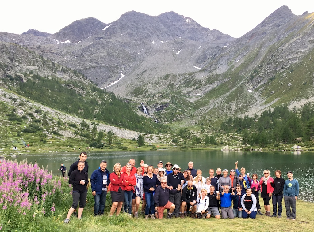 Un peu inquiets les randonneurs de l’ACCB à leur départ des Cimes Blanches le mardi matin 14 août ! Il pleuvait sur La Rosière et le ciel était complétement bouché. Mais la météo italienne était optimiste. En effet, l’épais brouillard qui nous accompagna jusqu’au sommet du Col du Petit Saint-Bernard laissa place, d’un seul coup à un beau ciel bleu. Que du bonheur pour les 50 courageux qui avait répondu à l’invitation de Bernard Fuchs et Marius Ansermin, les deux « GO » de l’ACCB !