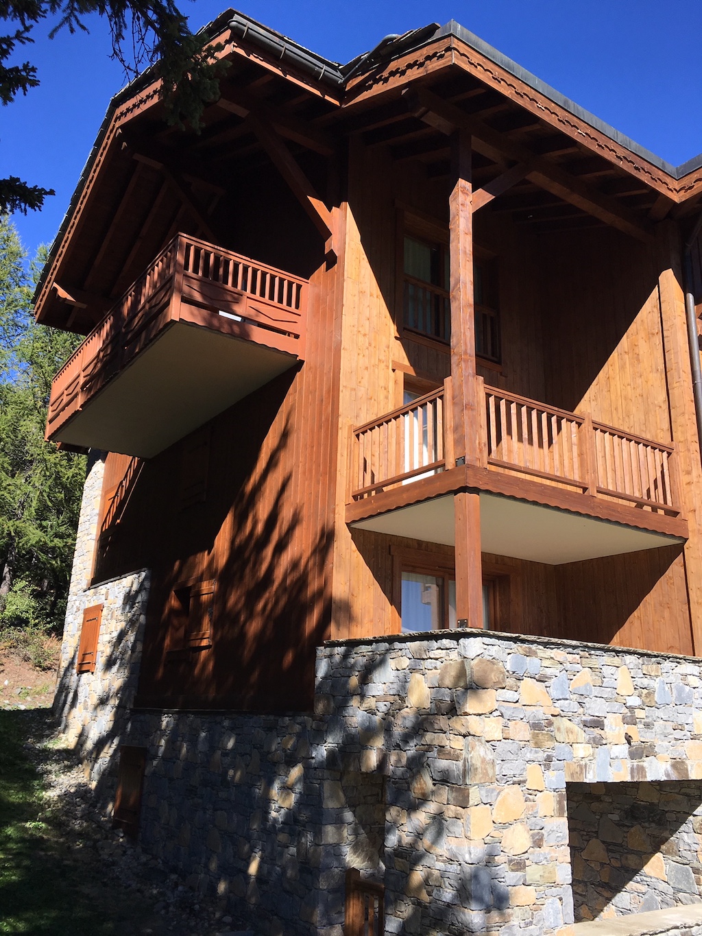 Entamés début septembre, les travaux de rénovation des façades réalisés par l’entreprise EGPJ de Grenoble se poursuivent aux Cimes Blanches. Et les premiers résultats sont encourageants. Hormis le rez-de-Jardin toute une partie de la façade sud du chalet F est terminée. L’autre le sera en fin de semaine prochaine. Sur l’une des photos ci-dessous on voit nettement le coloris plus clair des nouveaux lasures par rapport à l’ancien, sur la face ouest du chalet. Du plus bel effet !
