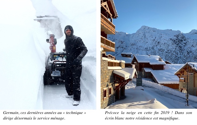 Au service technique, Arnaud, Francis et Martin (agent polyvalent qui surveillera également la piscine) ont rejoint les cadres, Gérard et Sylvain, alors que Germain, un autre ancien de la maison, reprend du service, comme cet été, à la tête du service ménage de la résidence. Cet hiver, aux Cimes Blanches, la gouvernante sera donc un gouvernant !