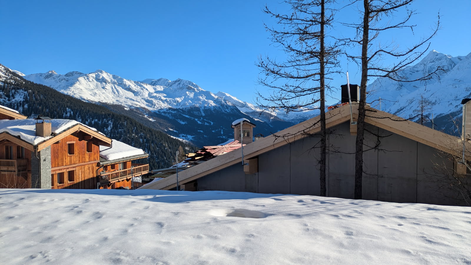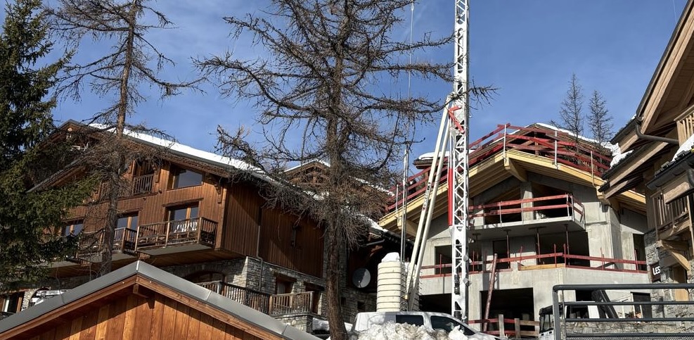 Au sud, c’est le chalet Matsuzaka qui nous cause un embarras supplémentaire. Sur l’est de son extension, la toiture a été posée. Moins impactant que ce que nous craignions. Les personnes résidants au rez-de-chaussée du chalet H auront toujours vue sur Les Arcs, le Mont Pourri et Sainte-Foix. L’extension ouest devrait se poursuivre au printemps.